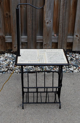 and a cheap lamp table all gussied up with ORB and vintage sheet music.